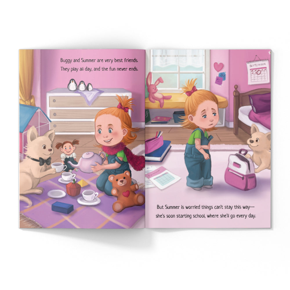 A confident little girl whose best friend is an adorable cuddly puppy named Buggy the Snuggy. When Summer wakes up on her first day of school, she feels frozen with fear. But wise Buggy the Snuggy knows a special trick to help her get through any scary day. Will Summer listen to her friend, or will she try braving the world on her own?